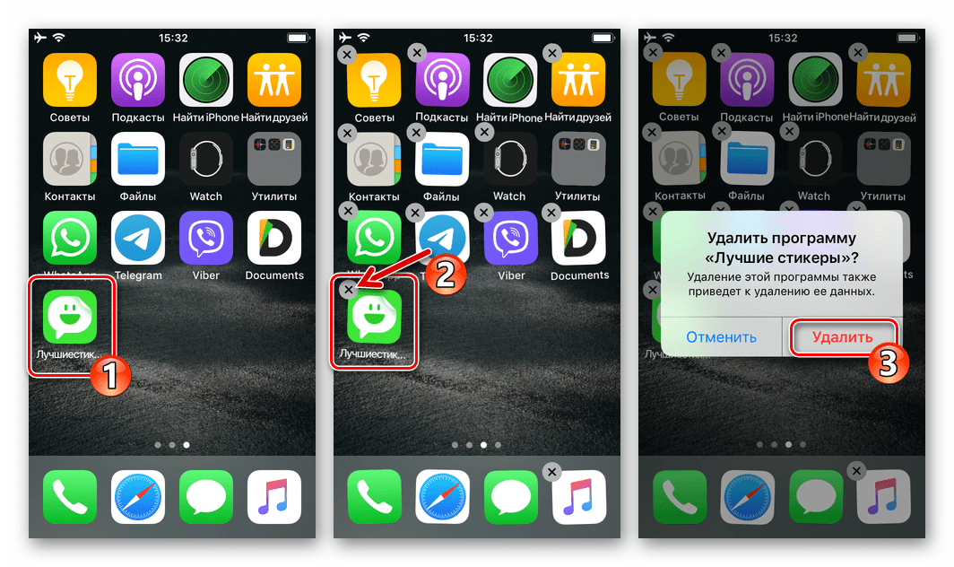 - После того, как набор эмоциональных картинок станет доступен в вашем мессенджере, программу, занимающуюся их добавлением, можно будет удалить с iPhone.