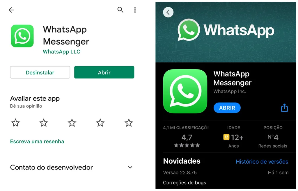 Обновление WhatsApp для Android (слева) и iPhone (справа) может восстановить удаленные стикеры (Скриншот: Кайо Карвалью)