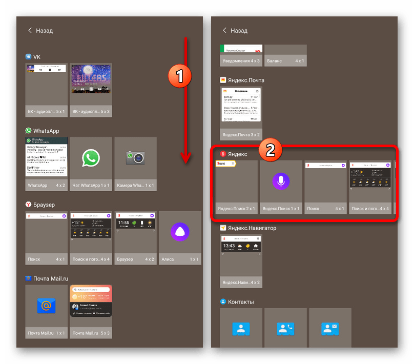 Из представленного списка выберите раздел с нужным вариантом. Учтите, что некоторые виджеты могут дублироваться, так как идут в комплекте вместе с приложениями.