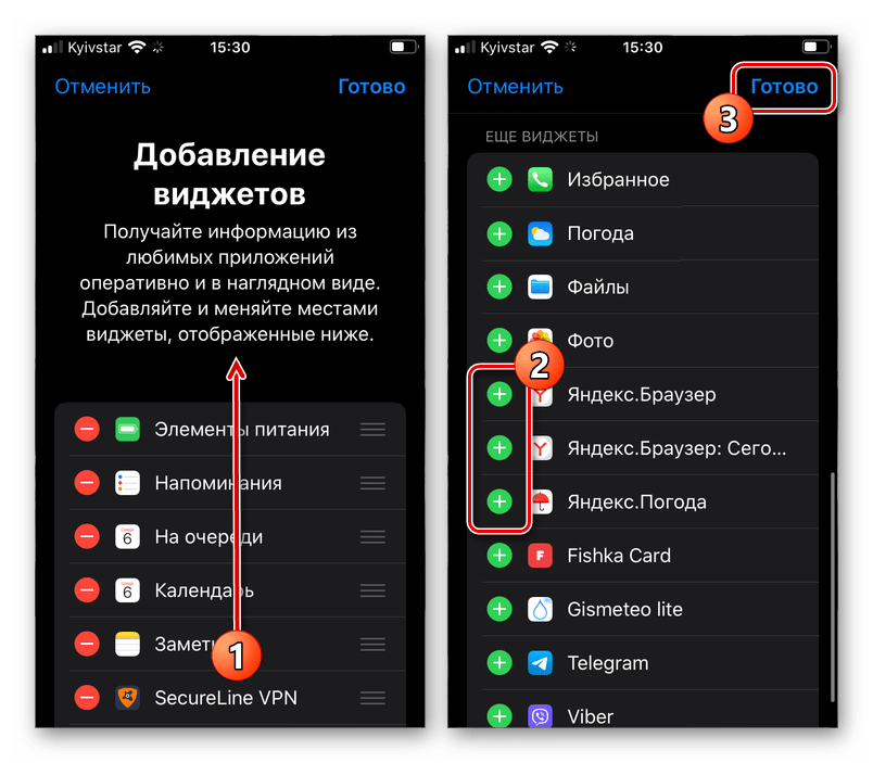 Найдите в данном разделе нужную панель, создаваемую каким-либо приложением Яндекса, и нажмите по значку «+». В результате виджет появится среди используемых и на экране, открытом в первом шаге.