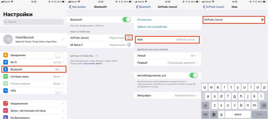 внутри, он находится напротив AirPods; - теперь ищем строку Имя