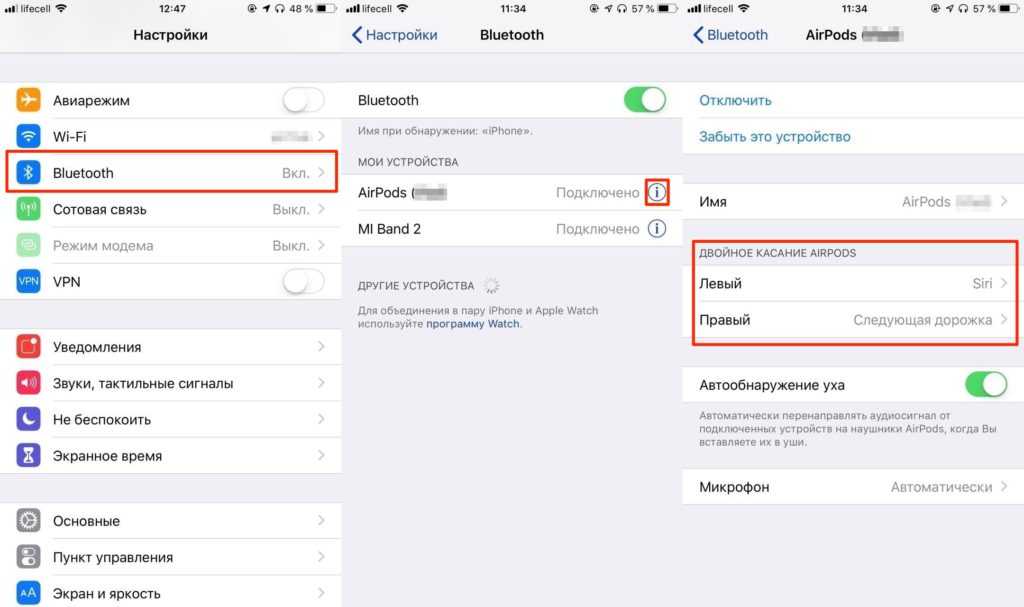 в кружочке, которая находится прямо напротив ваших AirPods; - видим пункт Двойное касание AirPods
