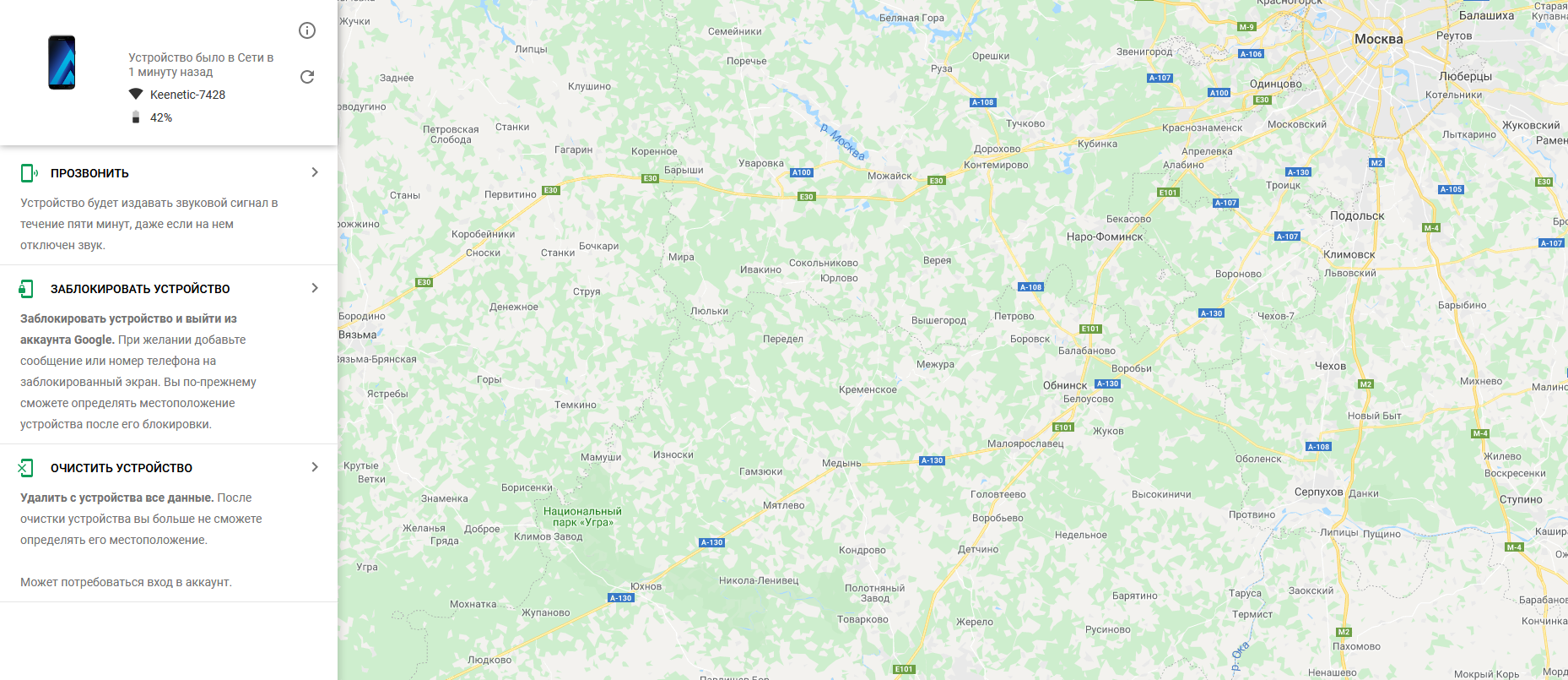 - После входа в систему вы увидите местоположение своего телефона на Google Maps. Если ваш телефон не подключен к Интернету, вы увидите последнее онлайн-местоположение на карте.