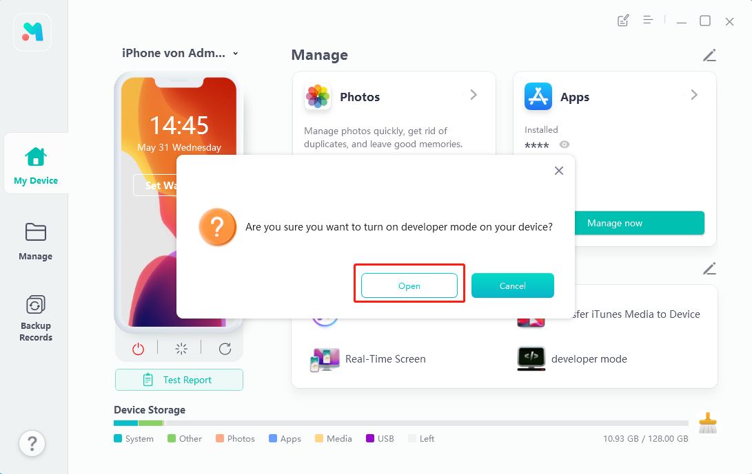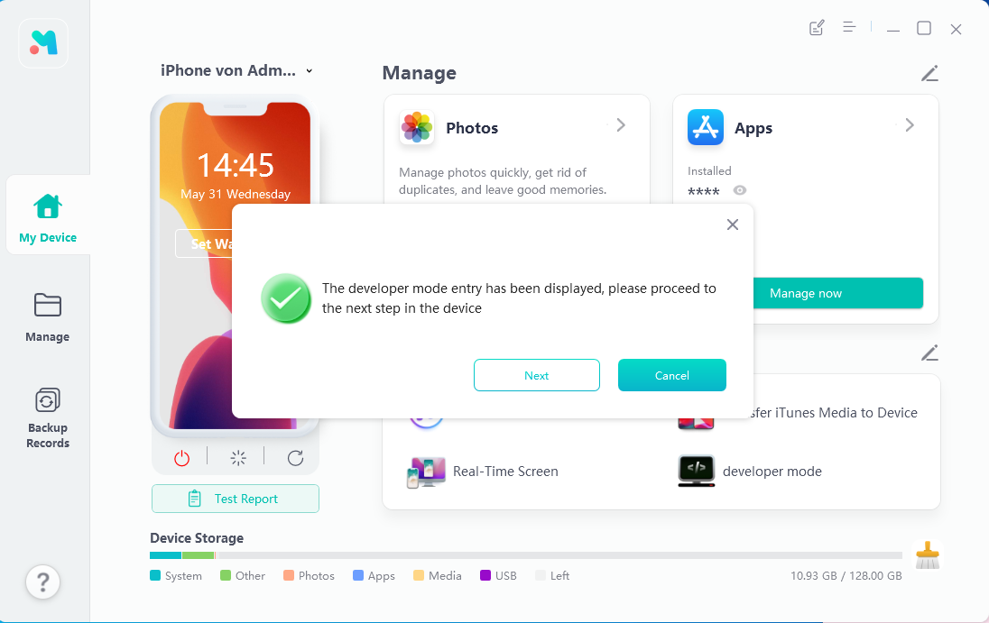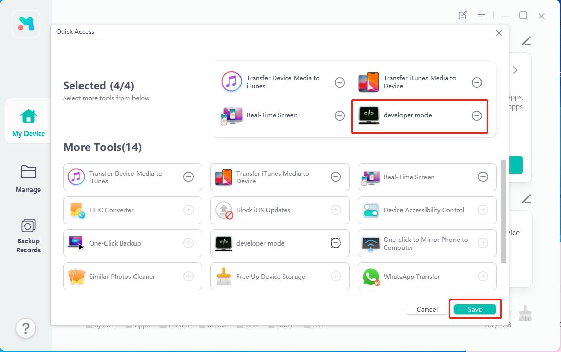 - Step 1 Download and install UltFone iOS Data Manager on your computer, then connect your iPhone to your computer. Find this tool, developer mode in Quick Access of the home page and click to open it.