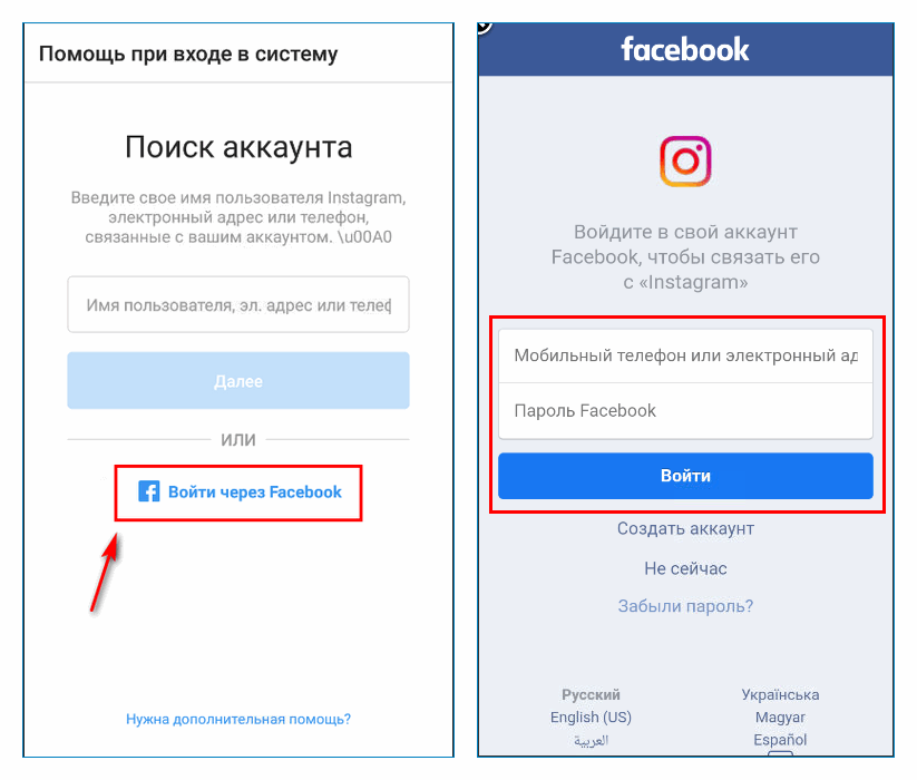 Мобильное приложение ограничено в возможностях входа в аккаунт и при запросе подтверждения пользуется только ресурсами, прикрепленными к личной странице. Веб-версия Instagram более вариативна и может предложить ввести другой номер.