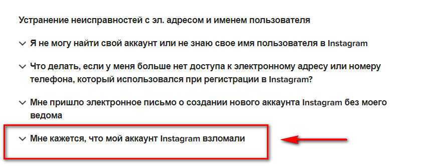 Ниже находим «Мне кажется, что мой Instagram аккаунт взломали» и следуем инструкции.