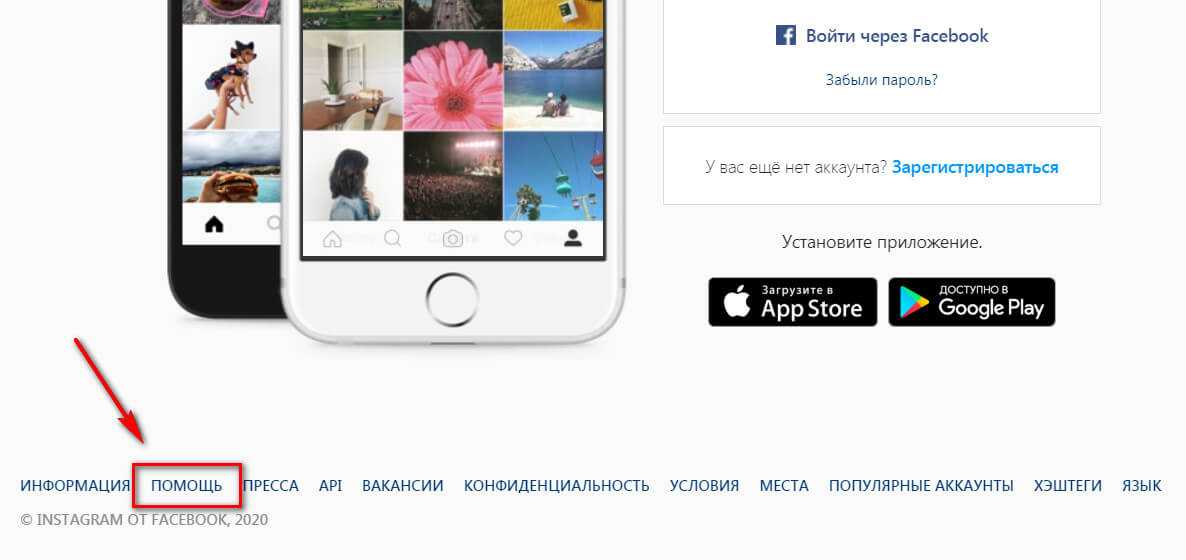 Или можно зайти в справочник Инсты, если нажать на кнопку «Помощь» на сайте соцсети и там найти инструкции.