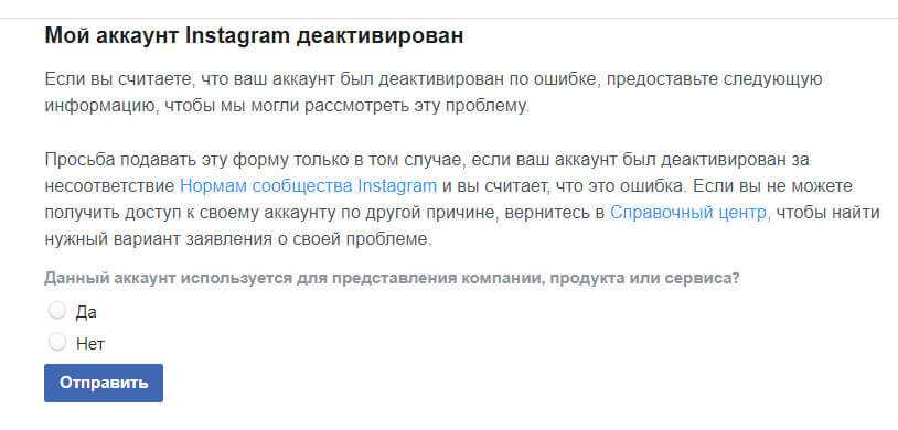 Написать письмо в поддержку Инстаграм такого содержания: