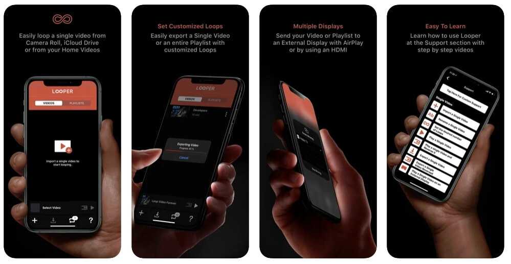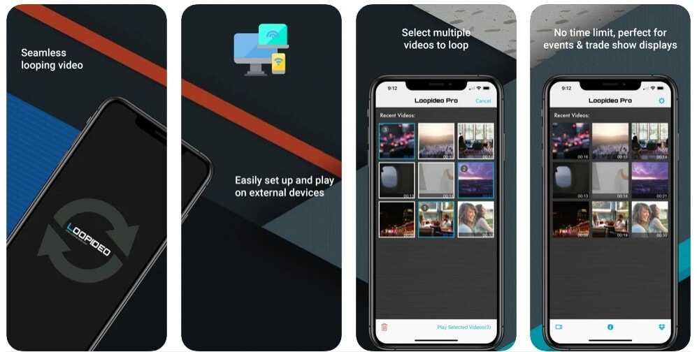 Loopideo — это приложение из нашего списка, которое является ответом на как зациклить видео на айфоне. Он позволяет вам импортировать любое видео из вашего воспроизведения, которое вы хотите воспроизвести в цикле. Это отличный инструмент, когда речь идет об индивидуальных и организационных презентациях. Это мощное приложение может быть очень полезным для вас во многих случаях.