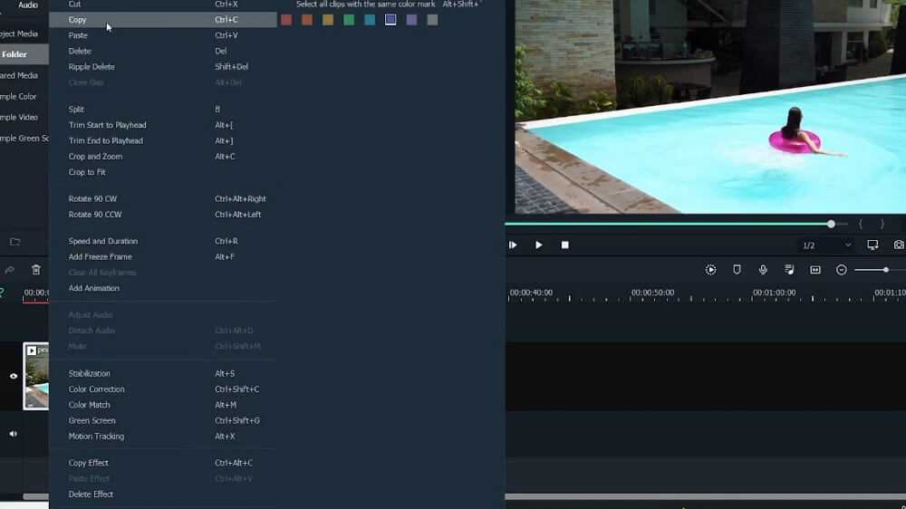 Щелкните правой кнопкой мыши вставленное видео и перейдите к параметру «Скорость и продолжительность», в диалоговом окне пользовательской скорости, где вы можете настроить скорость.