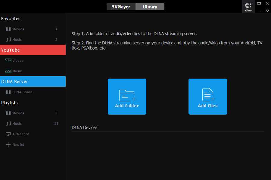 Полезным 5KPlayer найдут для себя и любители стриминга с использованием мобильных гаджетов под управлением Android и iOS, организовать который стало возможным благодаря поддержке плеером технологий AirPlay и DLNA.