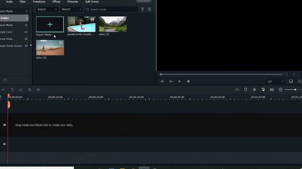 Запустите видеоредактор FilmoraTool на компьютере с Windows или Mac, а затем создайте новый проект. Импортируйте видео, как вы видите, уже импортированы все медиафайлы в медиатеку, из которых вы хотите зациклить эффект, а затем перетащите видеоклип на временную шкалу.