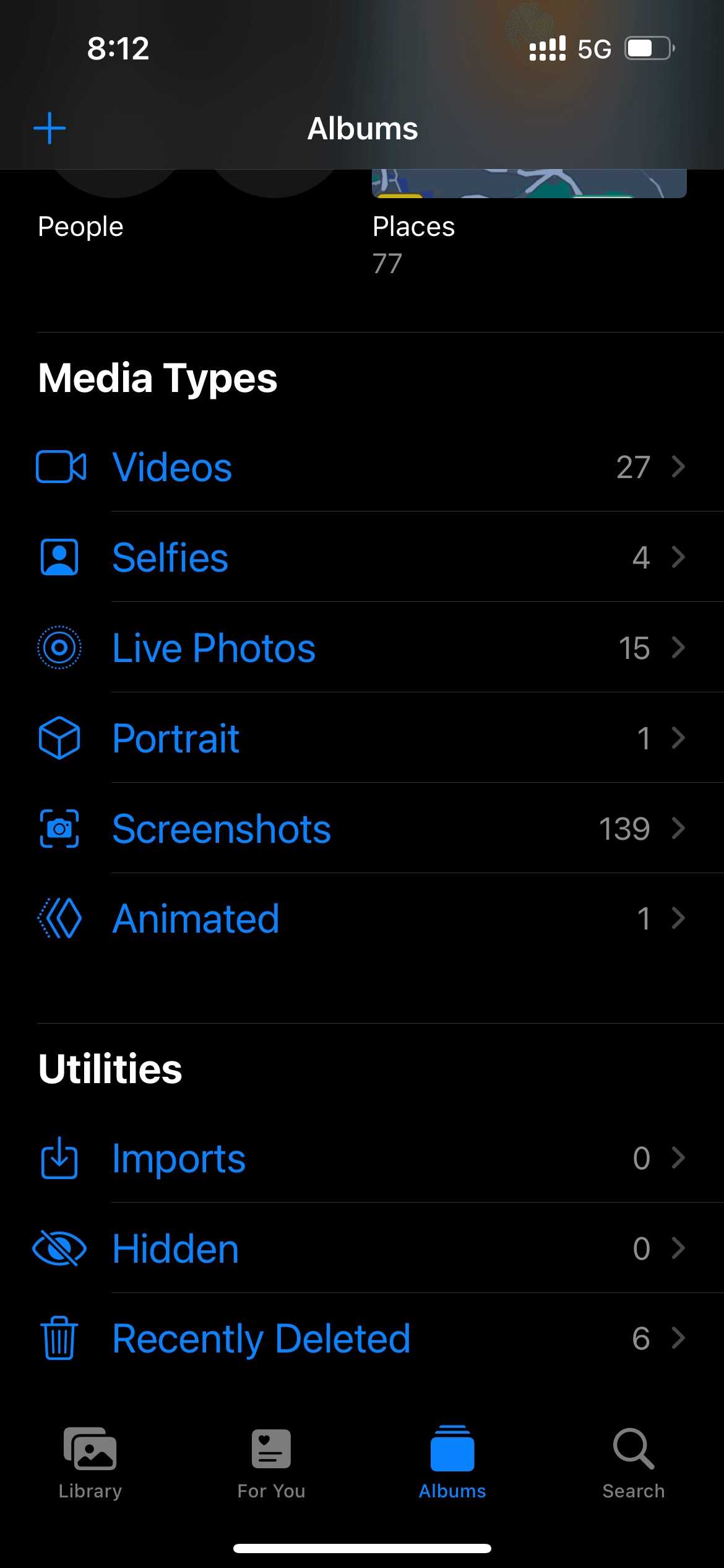 - После этого вы найдете живую фотографию, которую хотите преобразовать в циклическое видео, перейдя в приложения «Фотографии». Затем нажмите на Альбомы > Типы мультимедиа > Живые фотографии.
