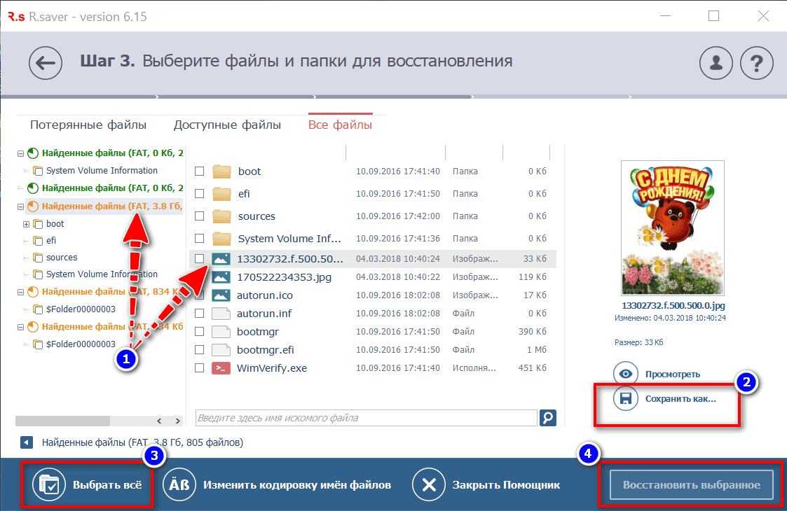 - Наконец, вы можете выбрать найденные файлы и поместить их в надёжное место хранения.