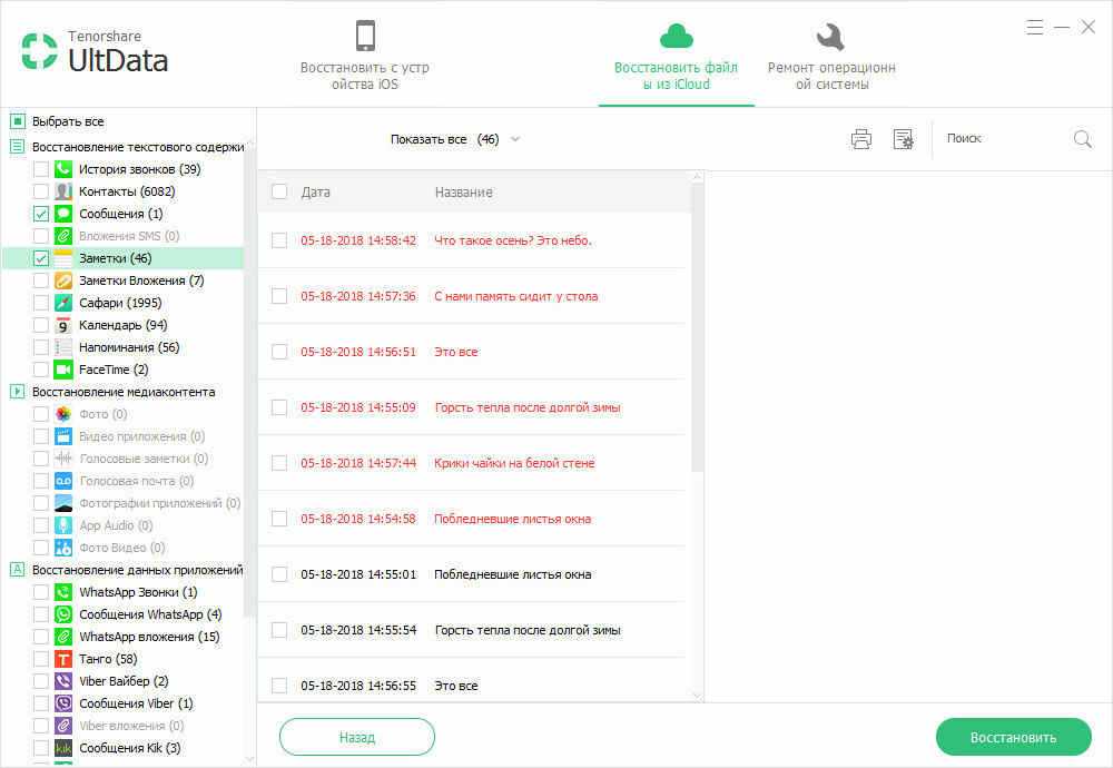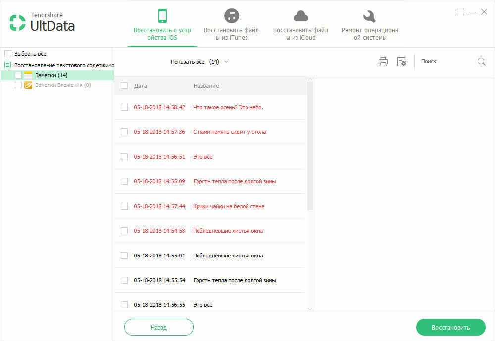 Если не хотите найти потерянные данные с помощью iCloud, то возможно восстановить их через iTunes, только что вы создали резервные копии в iTunes заранее. С помощью UltData, вы можете выборочно вернуть удалённые календари, напоминания и список закладок.