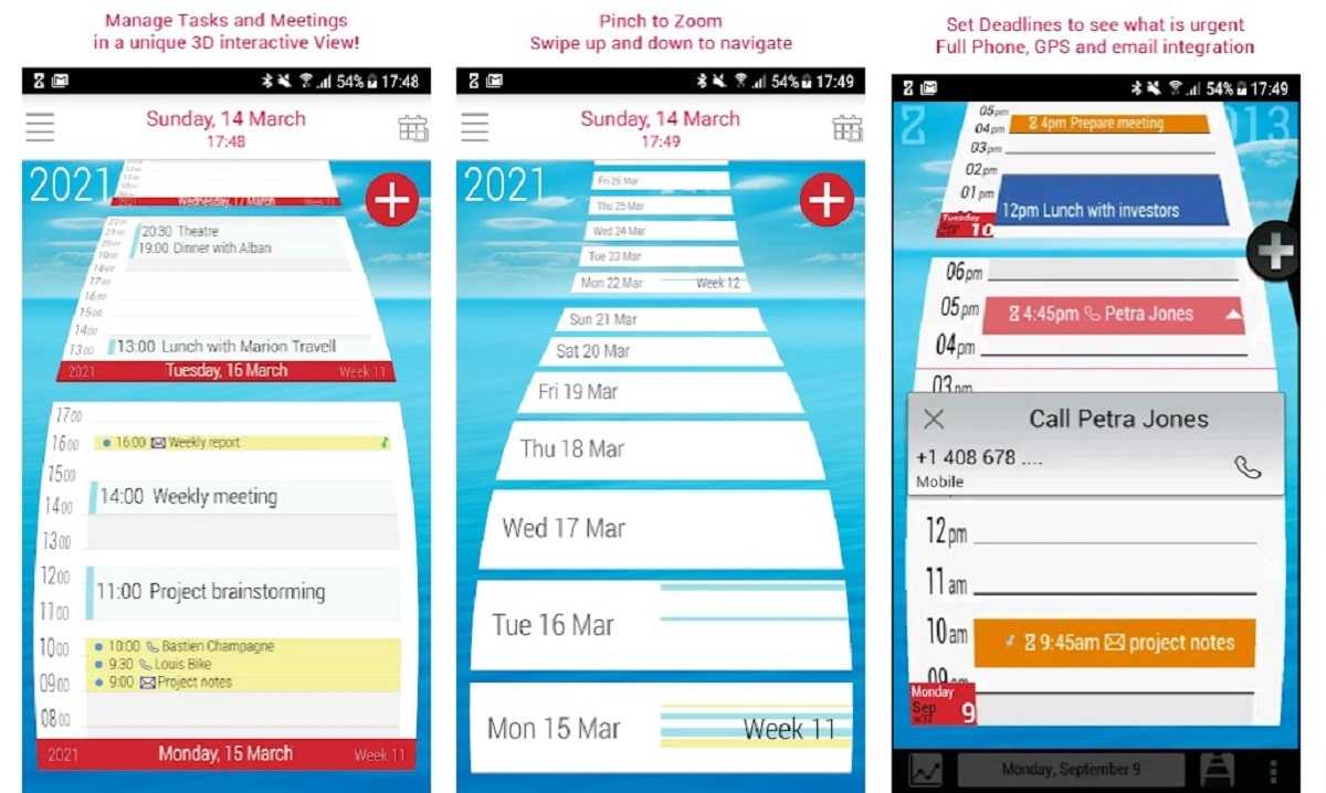 Если вы ищете интерфейс, совершенно отличный от интерфейса, предлагаемого большинством приложений, вам следует взглянуть на ZenDay. ZenDay предлагает нам Интерфейс в стиле «Звездных войн», что по мере продвижения во времени он удаляется и исчезает в верхней части экрана.