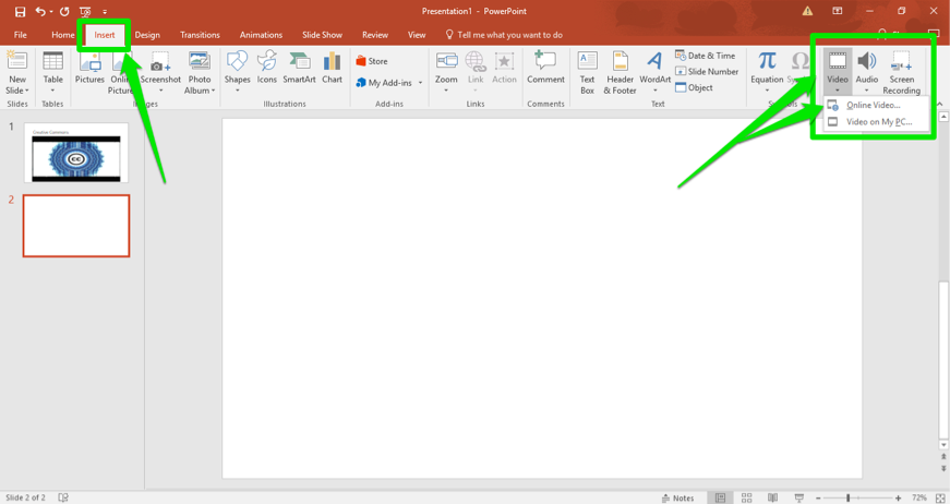 Самый простой способ добавить видеоролик в слайд презентации: