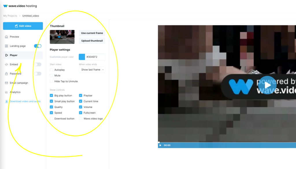 Нажмите на видео, чтобы открыть панель управления видео. В панели управления вы можете установить такие параметры, как автоматическое воспроизведение видео, повтор воспроизведения и т.д.
