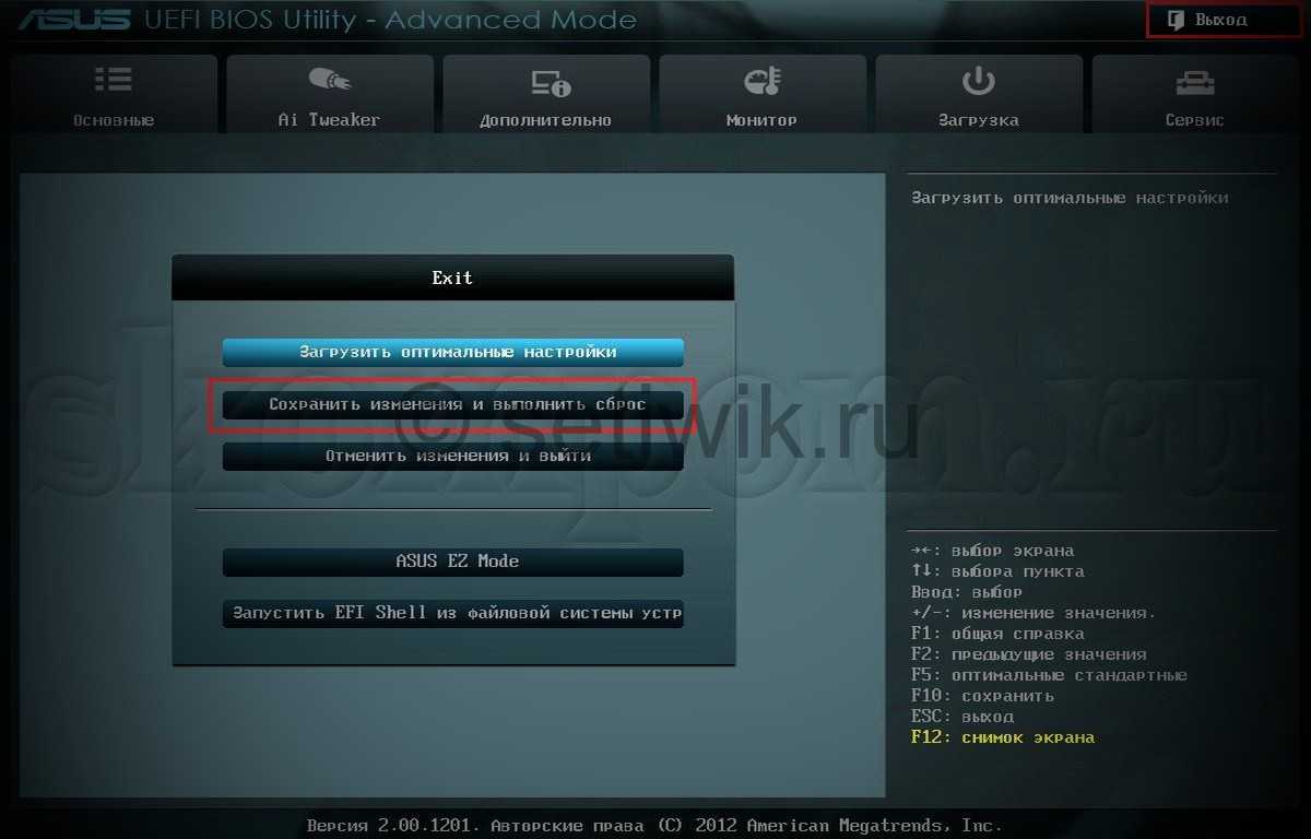 Нажимаем F10 и подтверждаем выход с сохранением (Save and Exit).