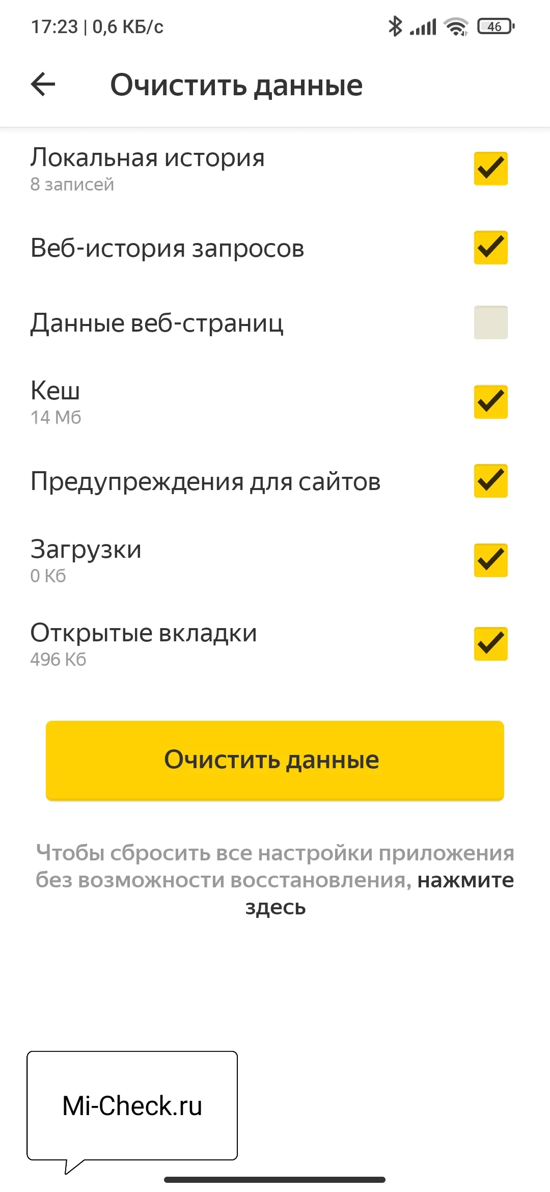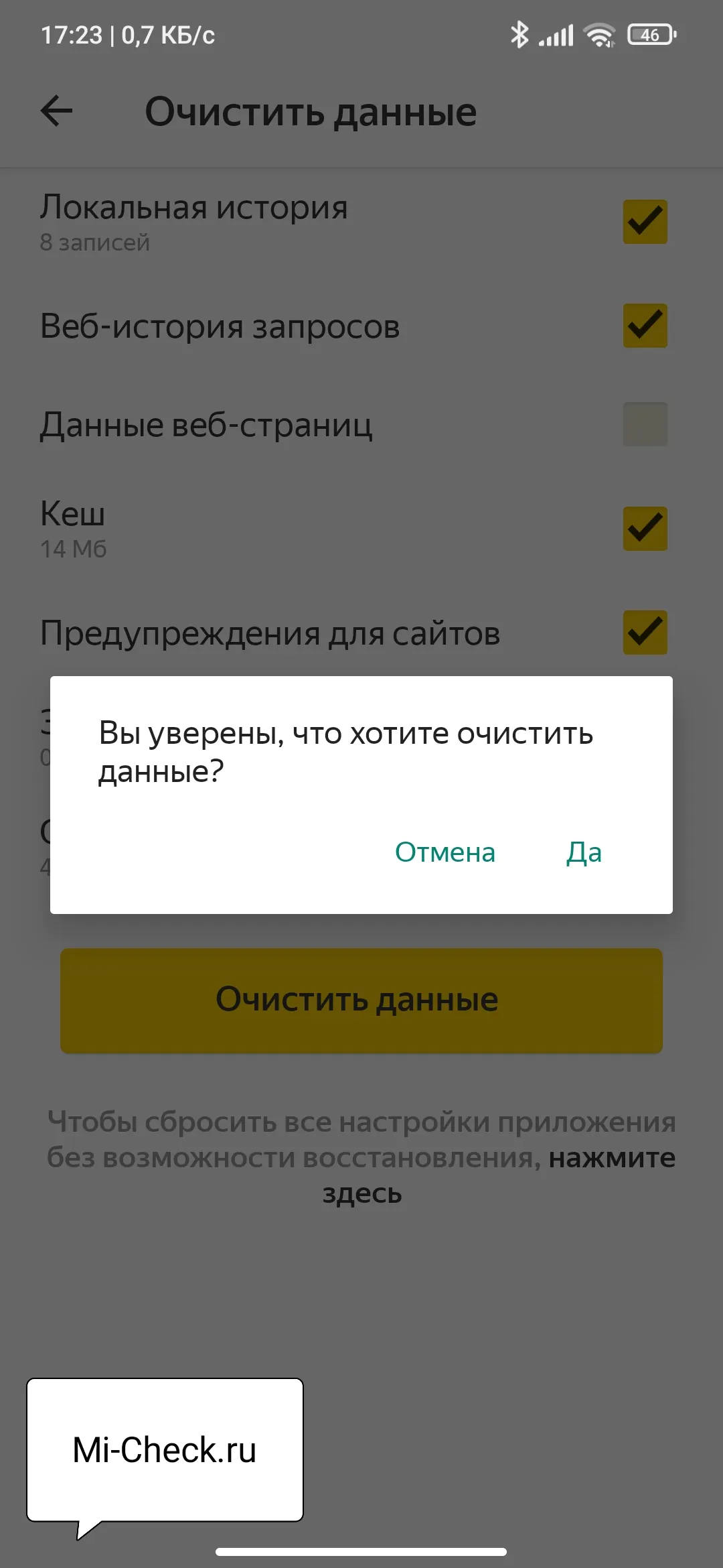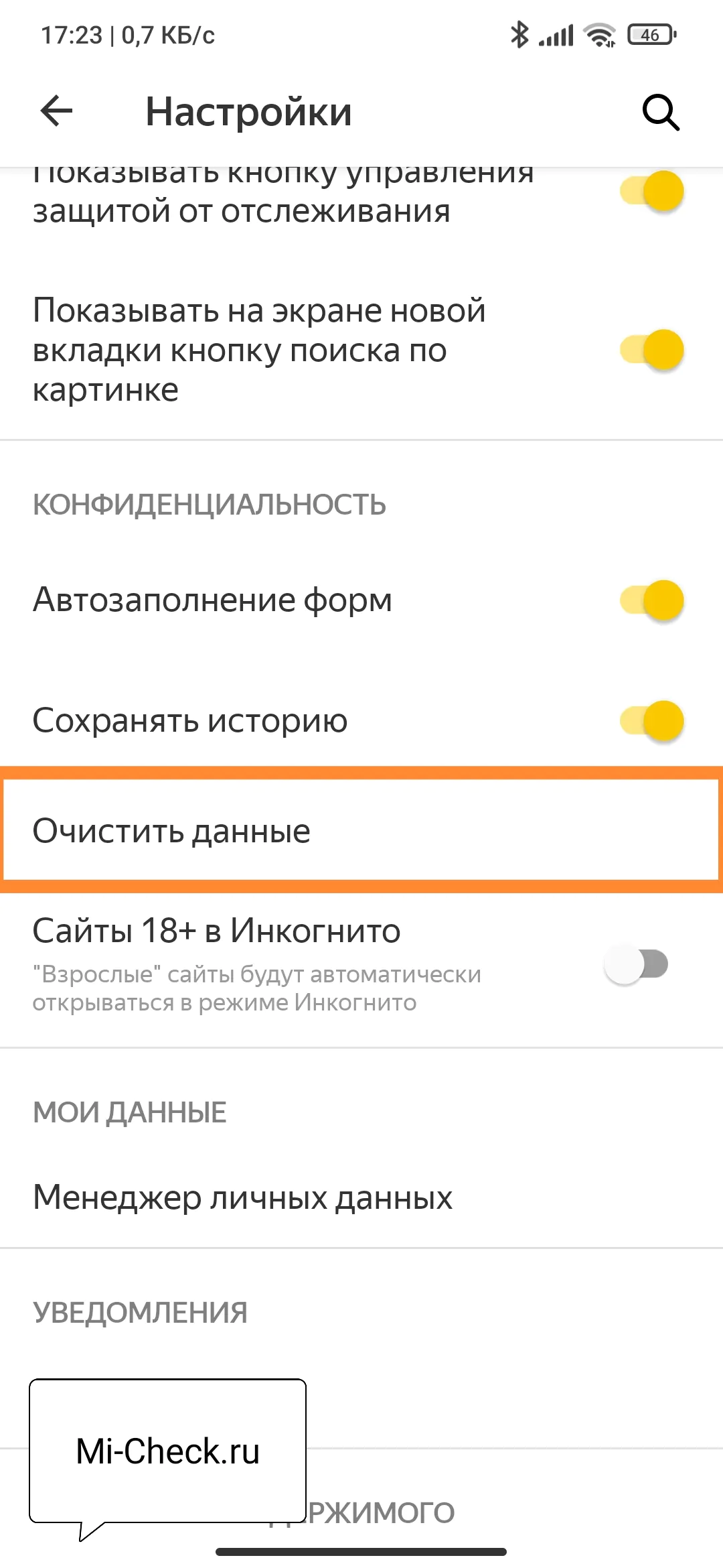 «Конфиденциальность»«Очистить данные»