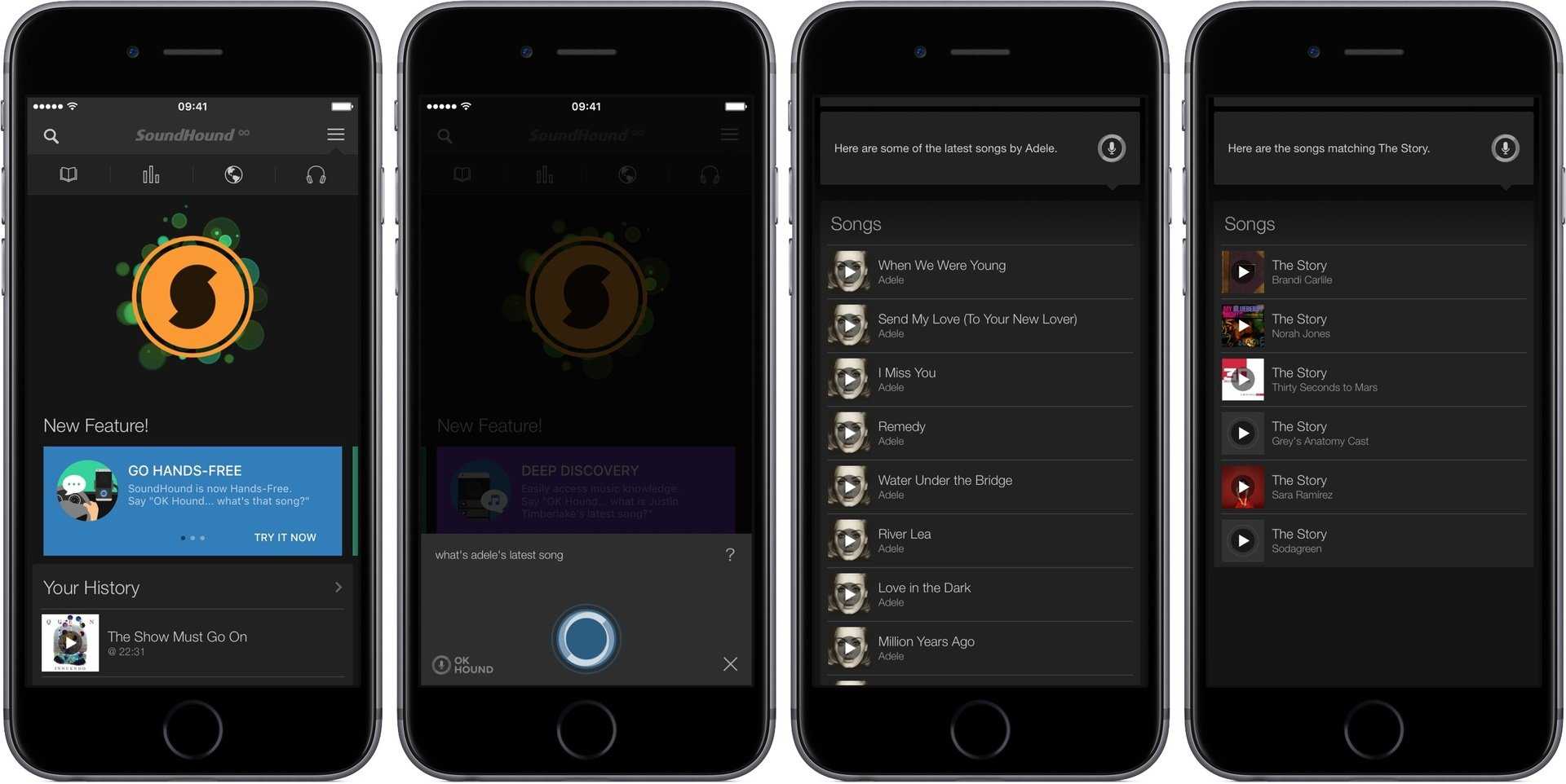 На первом месте по популярности после «Шазама» находится — SoundHound. Работа направлена на определение исполнителя и названия песни. По возможности на экране также выводятся обложка альбома, длительность и текст. Главным преимуществом приложения выступает возможность распознавать песни, напетые в микрофон человеком.