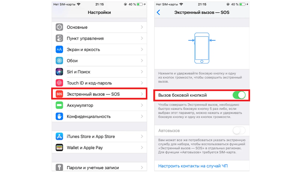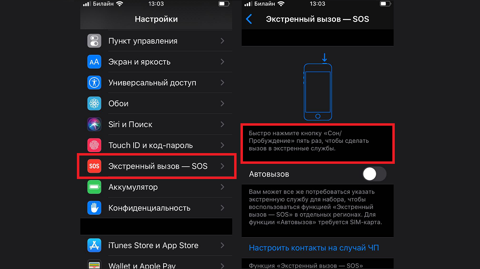 Нужно зайти в «Настройки» и сделать активным «Экстренный вызов – SOS». После этого, если вы зажмёте боковую кнопку и одну из кнопок громкости, устройство будет переведено в режим «SOS», и смартфон для разблокировки начнёт требовать код-пароль.