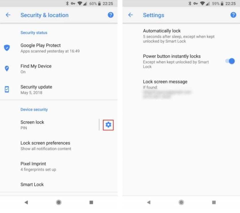 Чтобы изменить этот параметр, перейдите к Настройки -> Безопасность и геолокация. Щелкните значок шестеренки рядом с записью о блокировке экрана и выберите «Задержка» в разделе «Автоматическая блокировка».