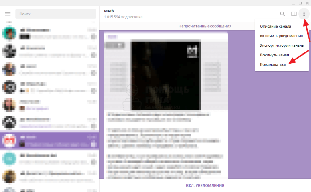 Далее в профиле этой группы (или канала) нажмите на 3 точки и выберите «Пожаловаться”.