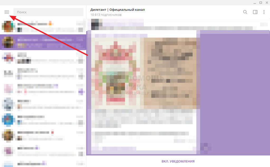 Шаг 1. Запустите приложение Telegram и откройте меню из трех горизонтальных линий.
