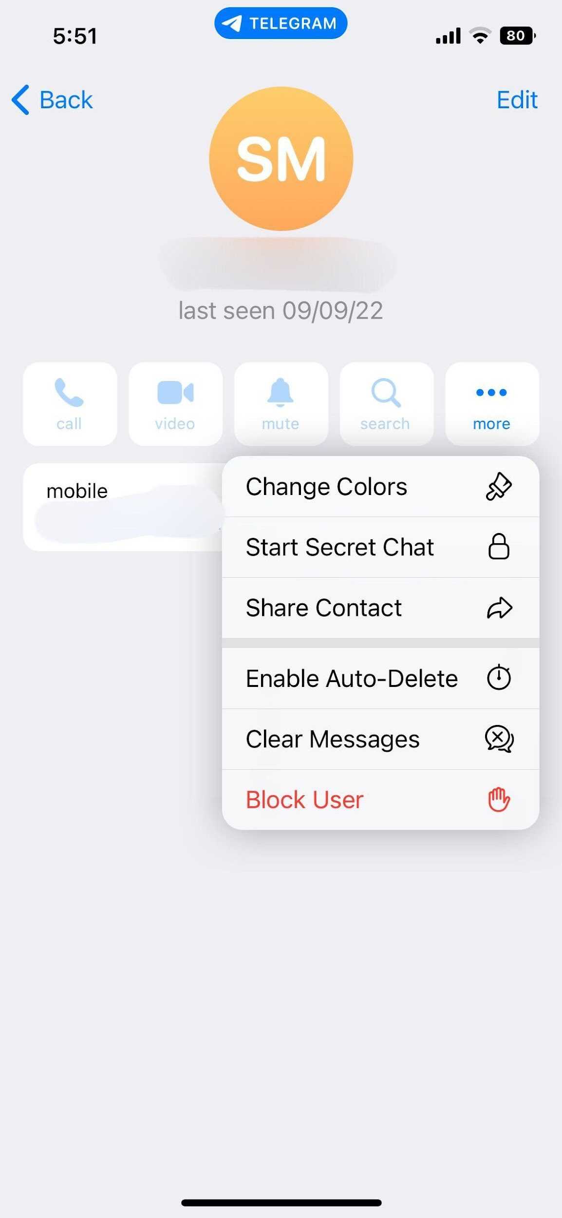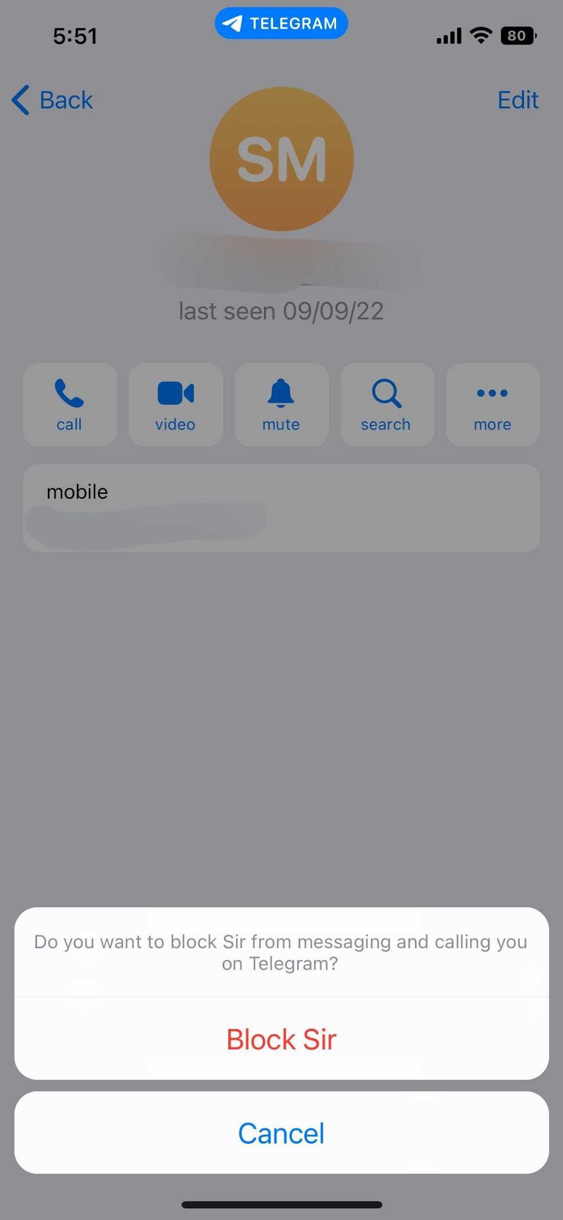 Ниже приведены простые шаги, как заблокировать пользователя в Telegram на устройствах iOS.