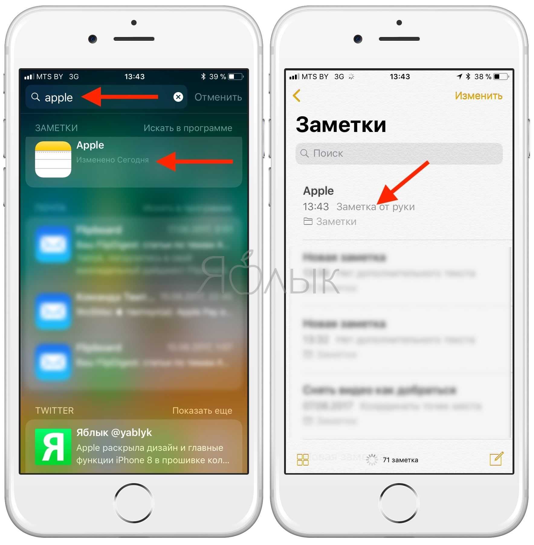 Начиная с iOS 11 Apple добавила возможность поиска рукописных заметок с помощью Spotlight. Все написанные вручную заметки синхронизируются с iCloud, поэтому доступ к ним можно получить не только на iPad, но и на iPhone.