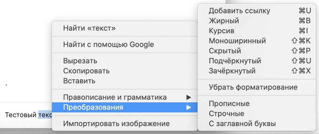 В следующем меню выберите стиль текста (зачеркнутый, курсив, жирный, моноширинный). Выбранный стиль сразу же будет применен к выделенной фразе.