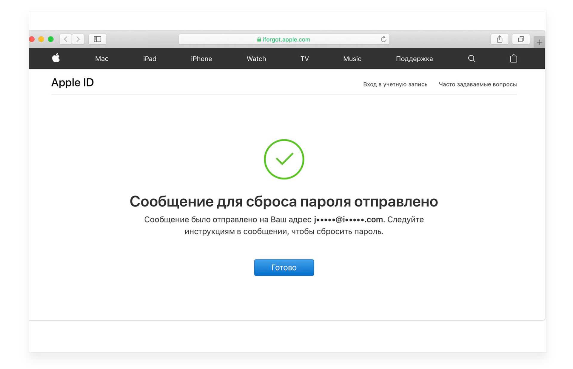 - Послав заявку на изменения пароля через электронную почту, на которую зарегистрирован Apple ID;