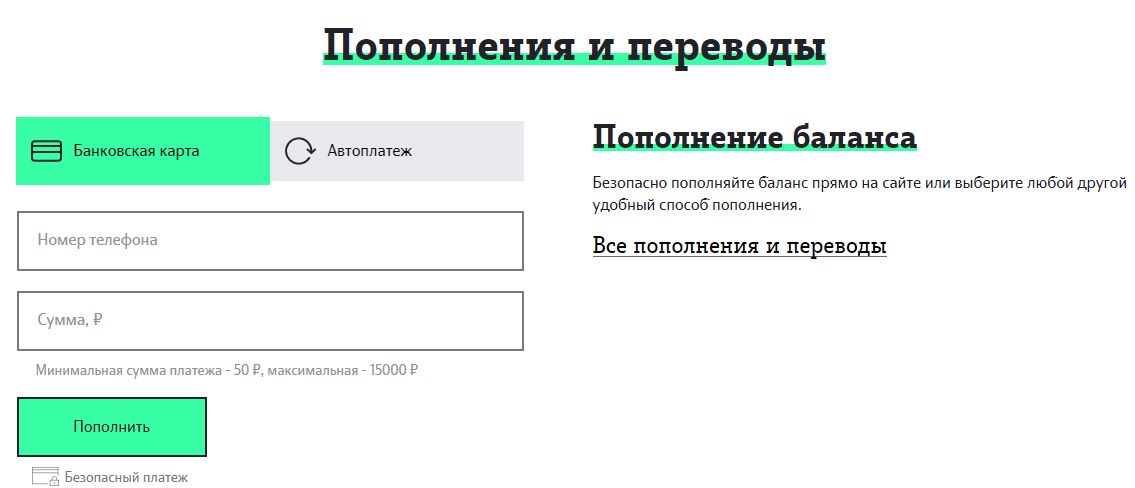 - Просто и удобно пополнять баланс при помощи банковской карты.