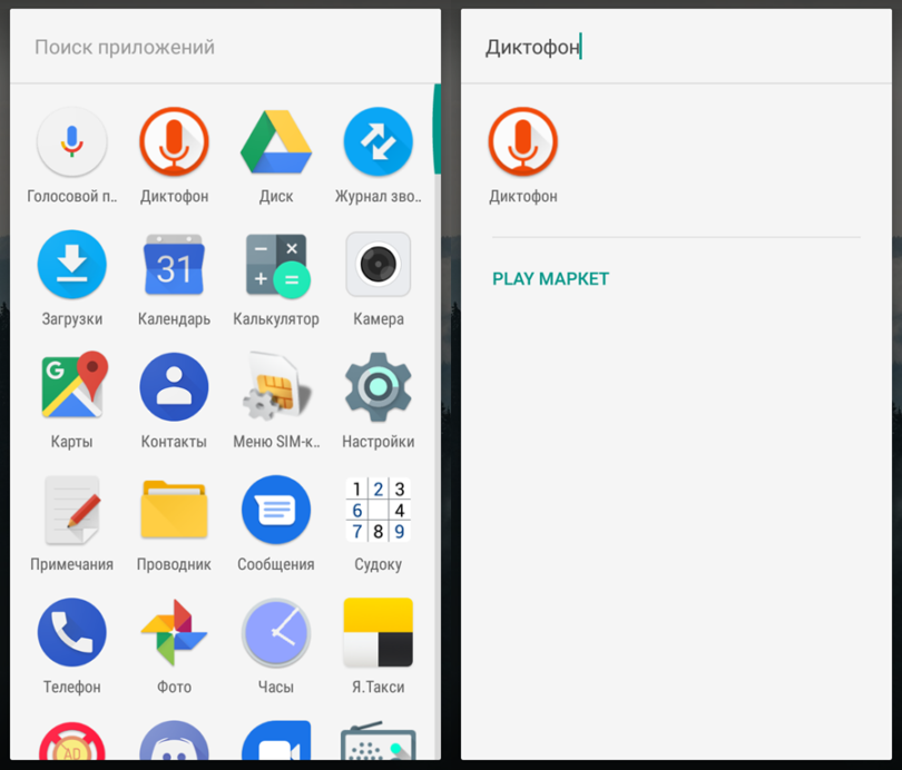 Архитектура этой операционной системы построена так, что все установленные приложения автоматически переносятся на главный рабочий стол и убрать их оттуда не получится. Поэтому, приложение Диктофон всегда будет на виду.