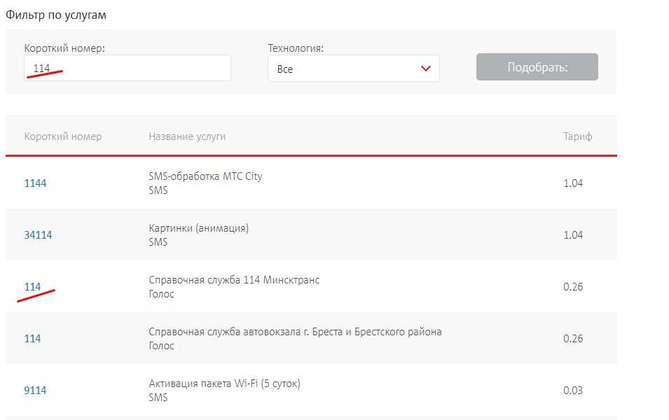 Или пример со страницей МТС. Увы, но фильтр здесь не позволяет искать услугу по ее названию — понадобится ввести номер.