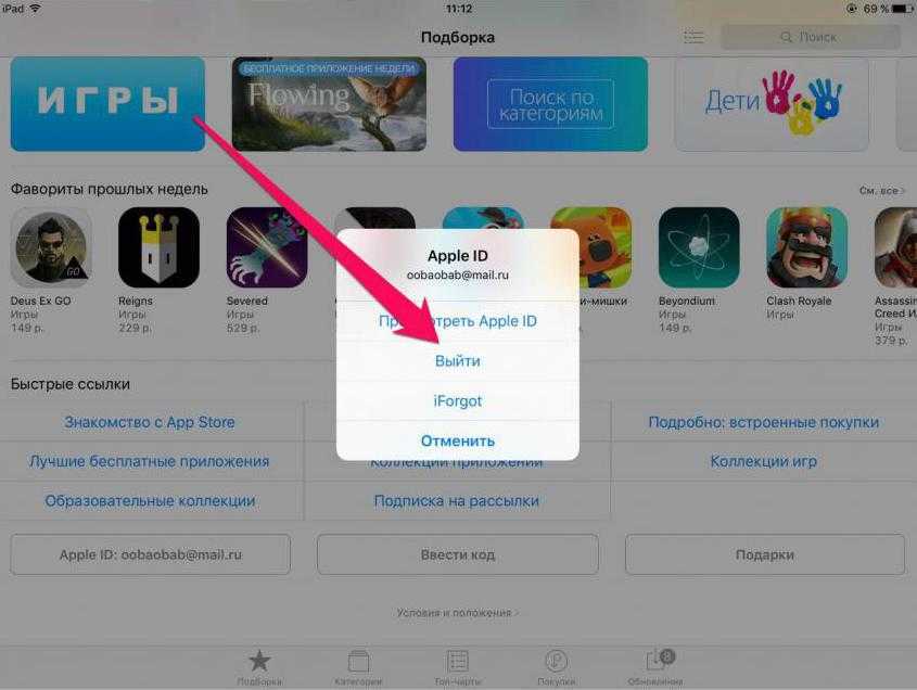 - Запустите App Store и во вкладке «Подборка» прокрутите в самый конец страницы и выберите кнопку «Войти».