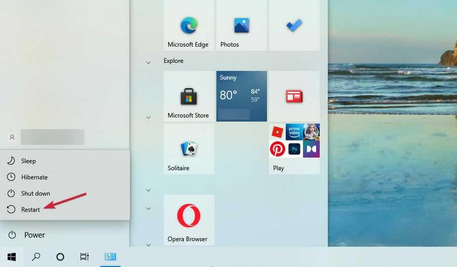 2. Press and hold the Shift key and select Restart.