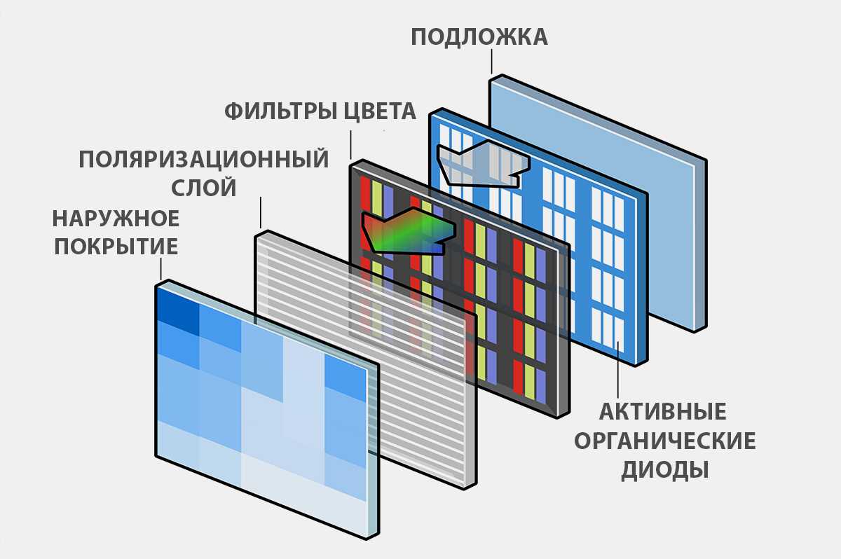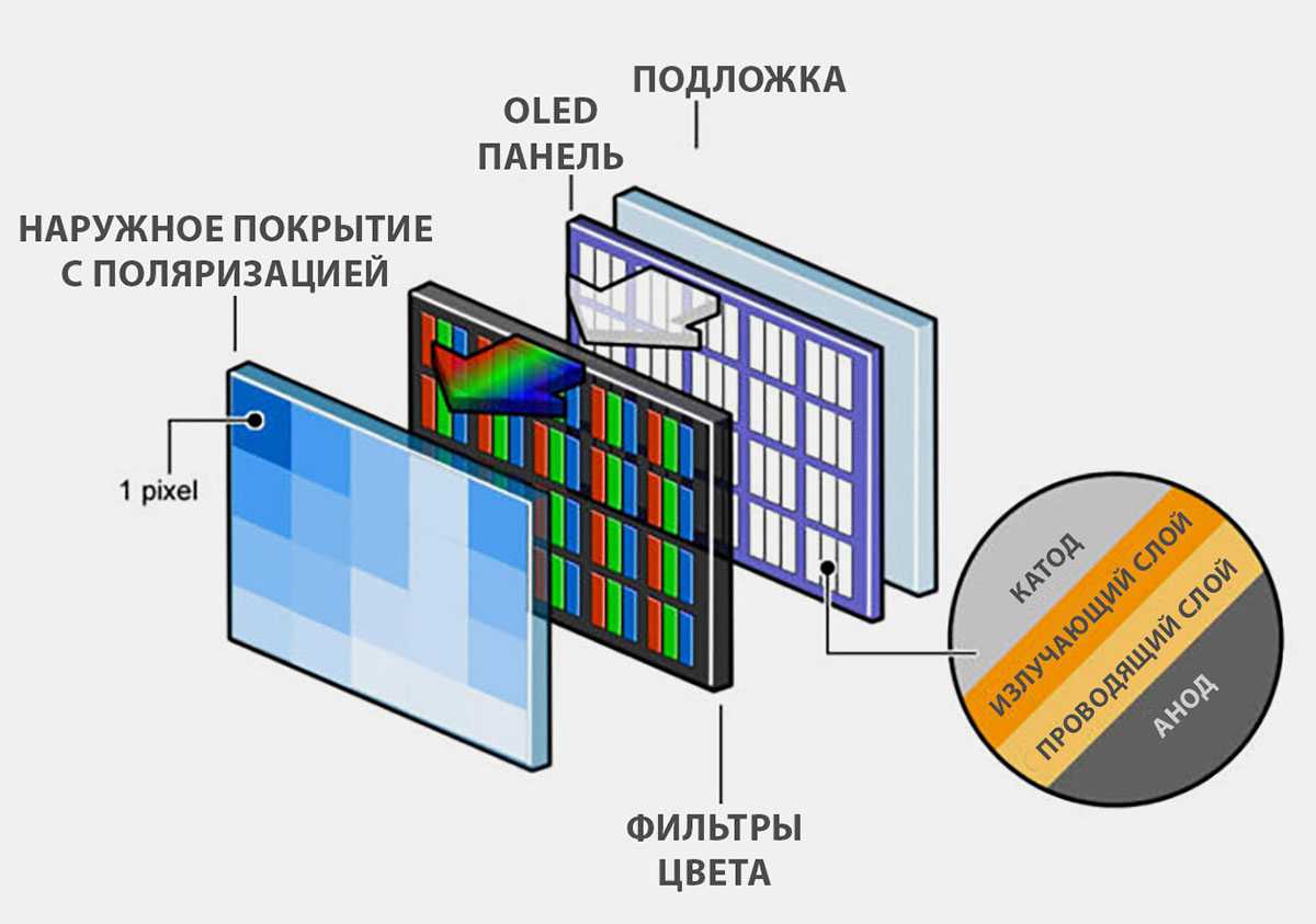 Логичным витком эволюции стало появление технологии OLED (Organic Light-Emitting Diode). Здесь используются уже органические кристаллы, которые более эффективно излучают свет при прохождении через них электрического тока. Но проблемой первых OLED-матриц была низкая энергоэффективность. Энергия подавалась сразу на целые полосы диодов для активации одной или нескольких точек на пересечении.