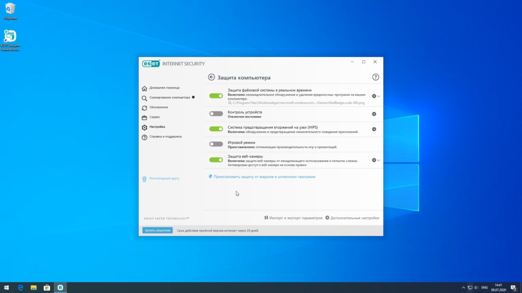 Антивирус отключается таким же образом, как и другие приложения. Если вы ранее устанавливали какое-то другое антивирусное приложение, то следует отключить и его тоже.