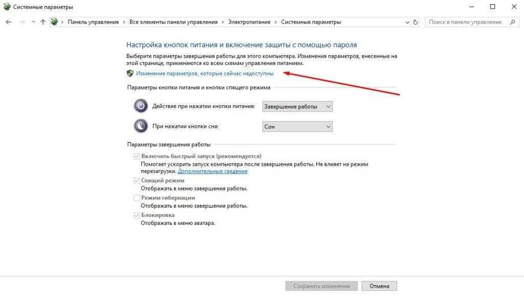 Нужный пункт будет недоступен, но его можно открыть, нажав на ссылку «Изменение параметров, которые сейчас недоступны».