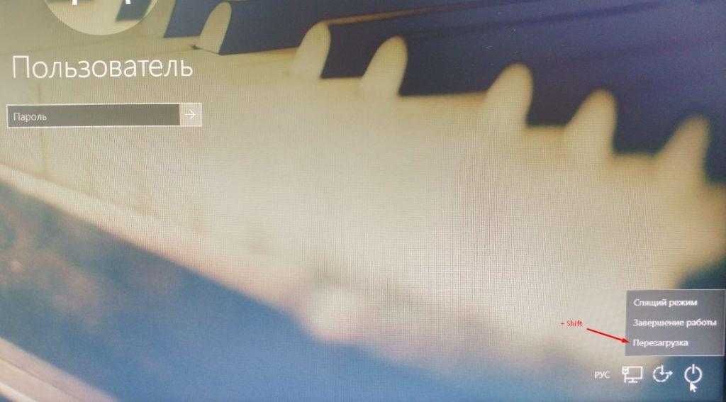 Для этого нужно открыть меню «Пуск», нажать на кнопку питания и выбрать вариант перезагрузки. НО, при нажатии необходимо удерживать клавишу Shift.
