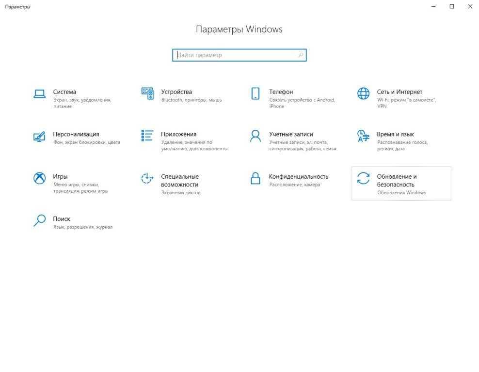 Далее мне следует перейти в категорию «Обновление и безопасность».