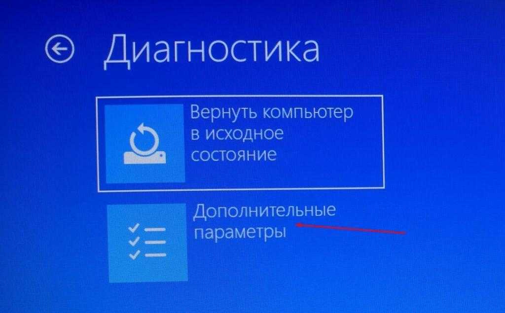 С окна «Диагностика» перехожу в раздел дополнительных параметров.