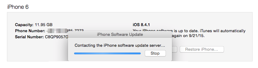 Некоторые пользователи сообщают, что во время обновления iPhone и iPad через iTunes, процесс останавливается на подключении к серверу обновлений. Ниже несколько советов, как это исправить.