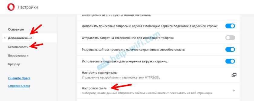 Переходим в раздел «Безопасность» – «Настройки сайта».