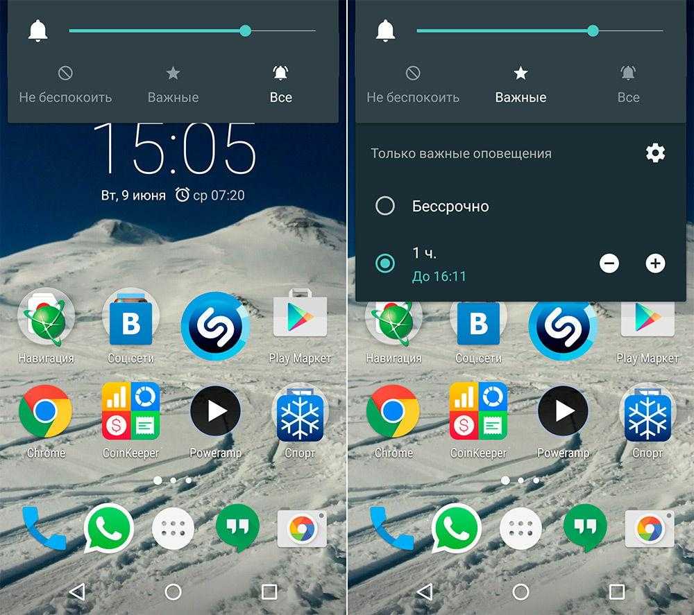 - «Важные» — вы будете получать только важные сообщения от программ, список которых можно регулировать. Вообще, при его включении вы увидите вкладку с настройками. В них можно изменять время работы режима. Более того, там есть специальная вкладка, позволяющая максимально гибко настроить этот режим.