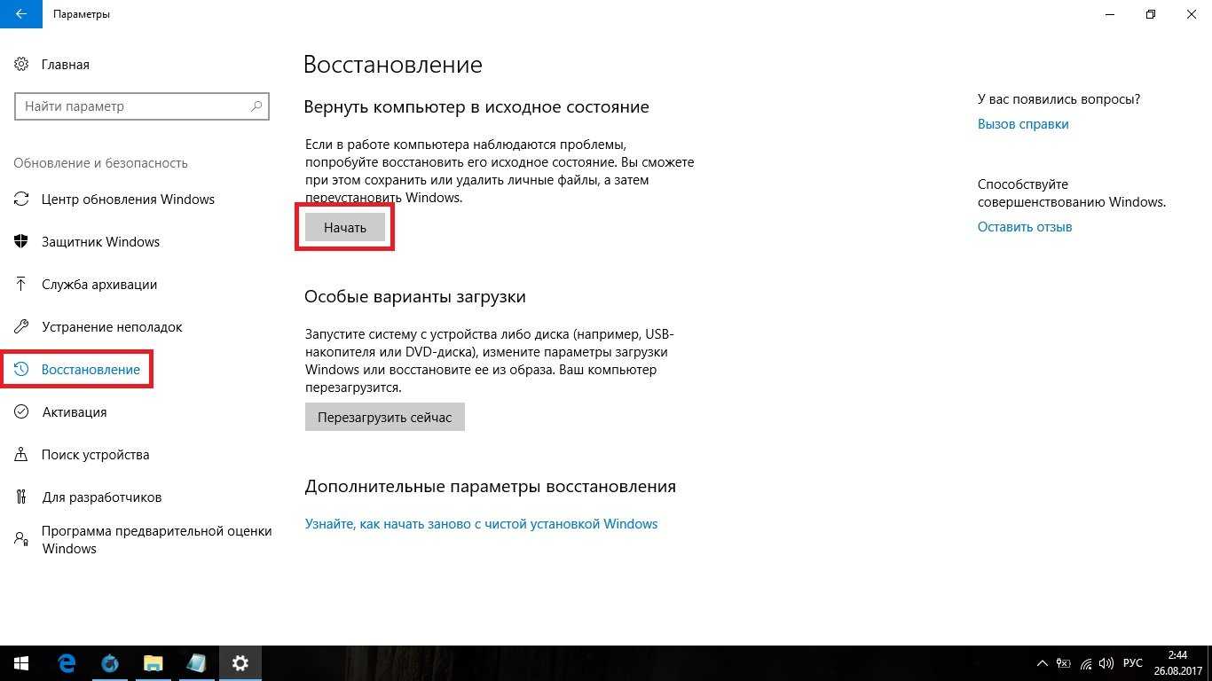 - 02:36 — Вернуть компьютер в исходное состояние