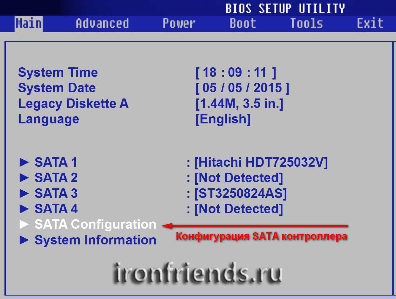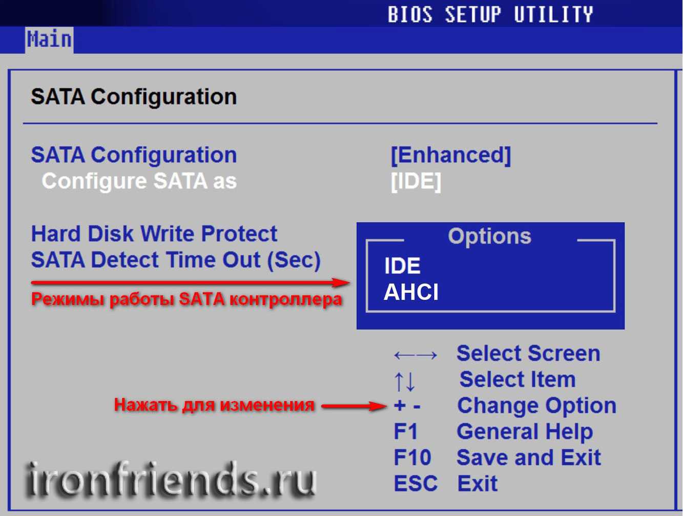 При настройке BIOS есть возможность выбрать режим работы SATA контроллера.