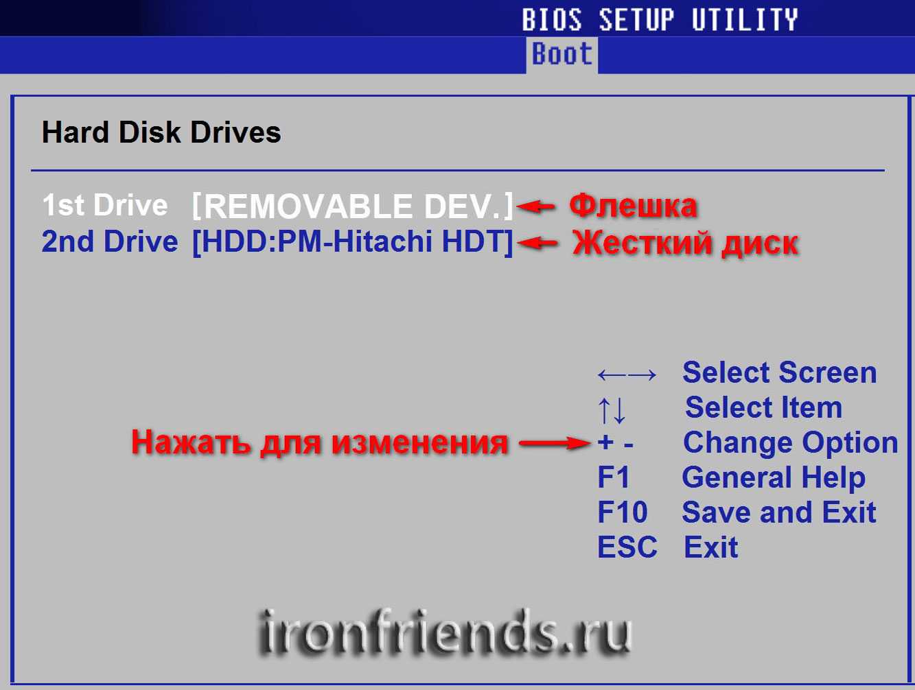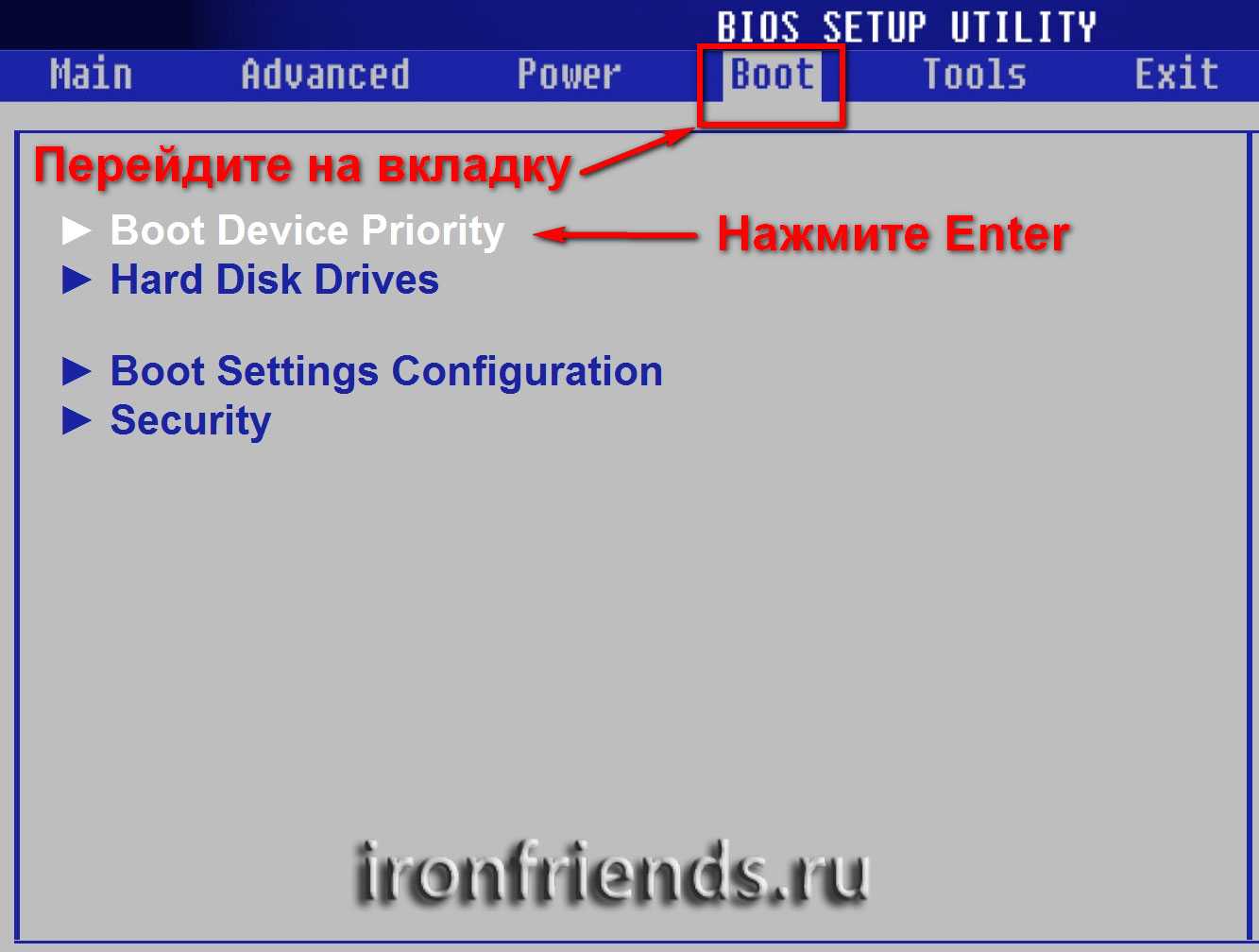 Обратите внимание на то, что в разделе «Boot» могут быть и другие пункты, отвечающие за приоритет загрузки, типа «Hard Disk Drives» или «Removable Device Priority»